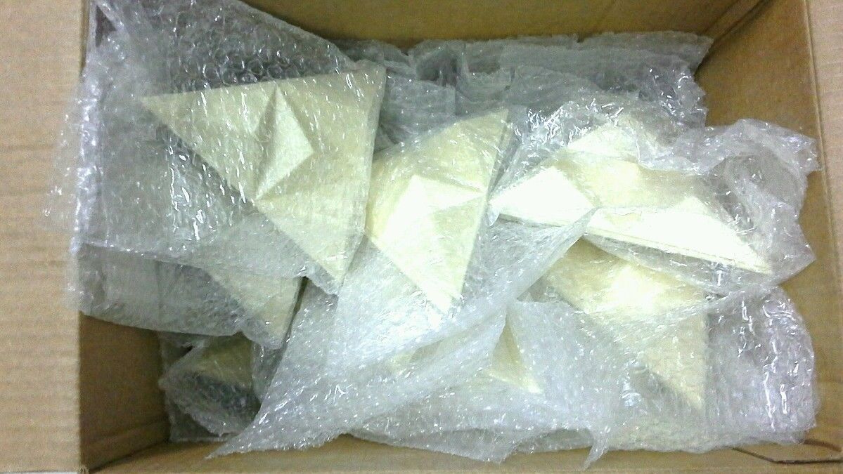 50 large triangles. 6 half triangles. 9 window top sections. (3 sets of 3 different) 18 ribbed top sections ( 6 sets of 3 different)