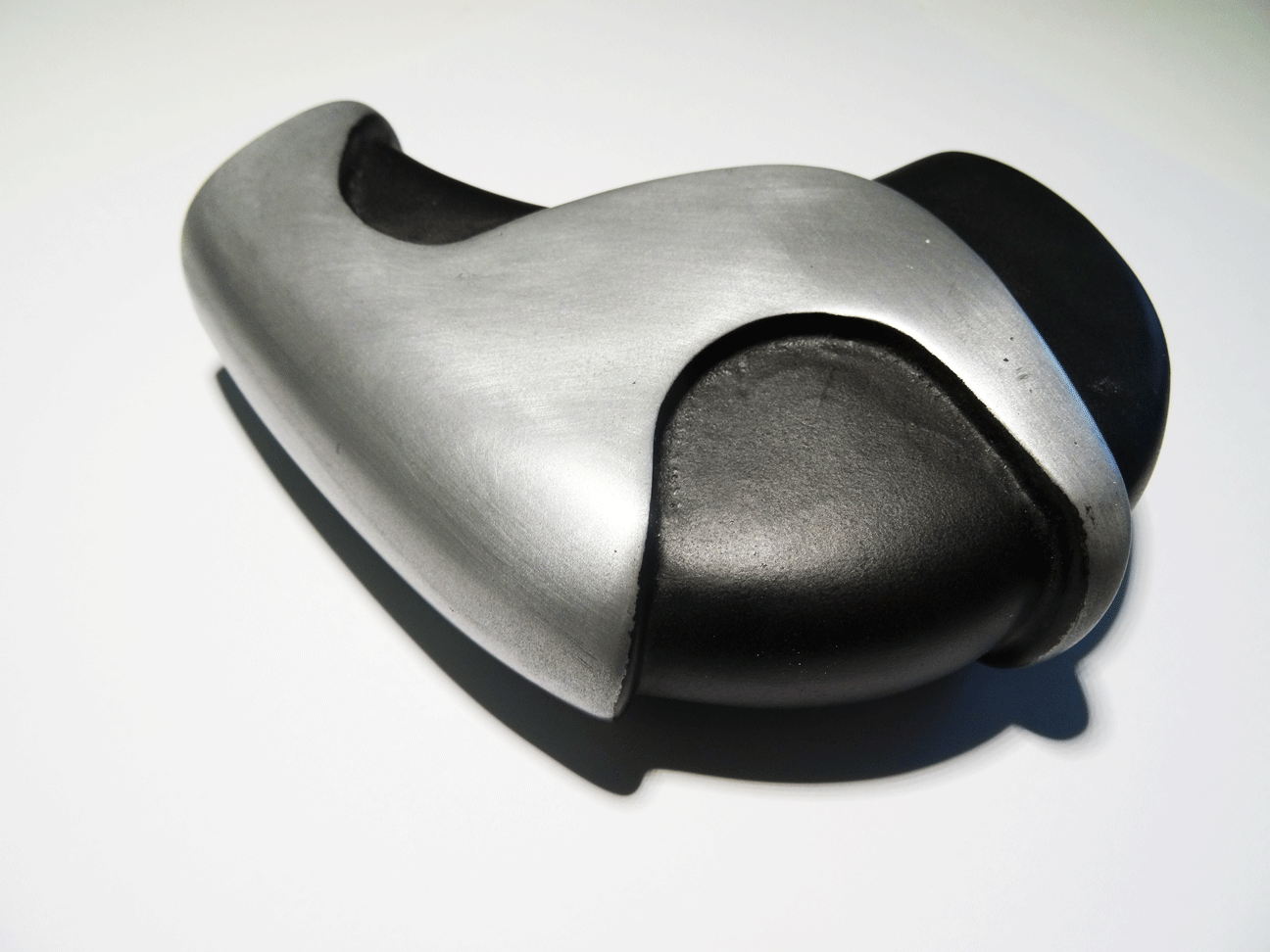 Cold cast aluminium construction, smooth polished / brushed finish with a satin black sprayed finish on the black areas.